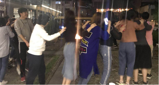 夜幕降临,新的活动又要开始啦!工作中融营通信每个员工都已饱满的激情去为客户而服务,在工作后我们更有高昂的热情!篝火点起,旅馆老板与老板娘先来了个爱的华尔兹热场,融营小伙伴们也不甘落后,一起手搭肩跳起了兔子舞。所有人组成一个小队,要求后面的学员用双手搭在前面学员的双肩上。
