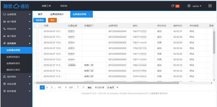 面向很多百胜这样的大型企业,在公司内部难免会出现员工之间信息流通少、跨地域协作缓慢的问题。融营通信云呼叫系统可以为其实现内部协同办公联络,将企业的业务信息在CRM后台进行统一化管理。除了查看和记录业务信息以外,同时可以产生多样化的报表,使得各公司可以实时根据数据的变动,按照业务需求及时调整业务策略。