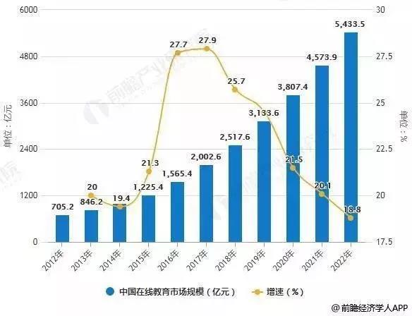 并预测2019年中国在线教育市场规模将突破3000亿元,并预测在2022年中国在线教育市场规模将超5400亿元。