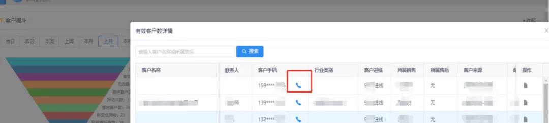 客户漏斗中部分客户类别新增拨打按钮