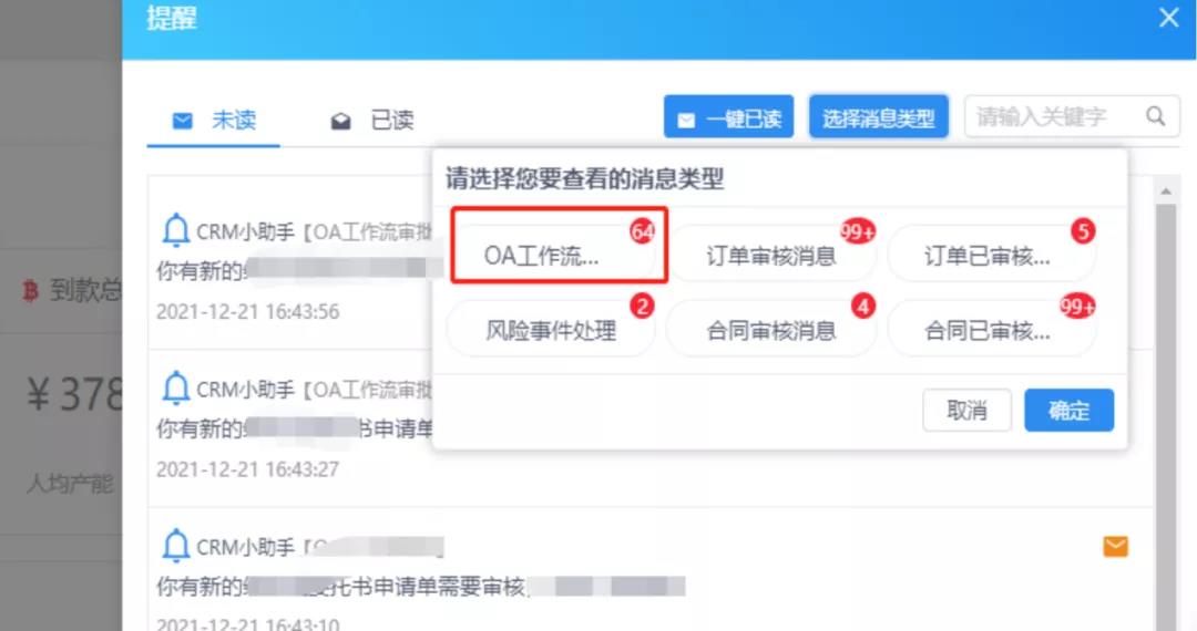 待办任务支持实时消息通知及按消息类型查看