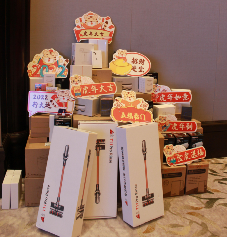 此外,本次启动会更设立了玩法多样的抽奖环节,所有与会人员可凭借入场券编号来参与抽奖,可谓是大奖丰厚,小奖丰富,百分百阳光普照,人人皆可满载而归。 随着会议高潮的到来,公司管理层更是抛出了数个万元红包,与大家共庆虎年开工之喜。